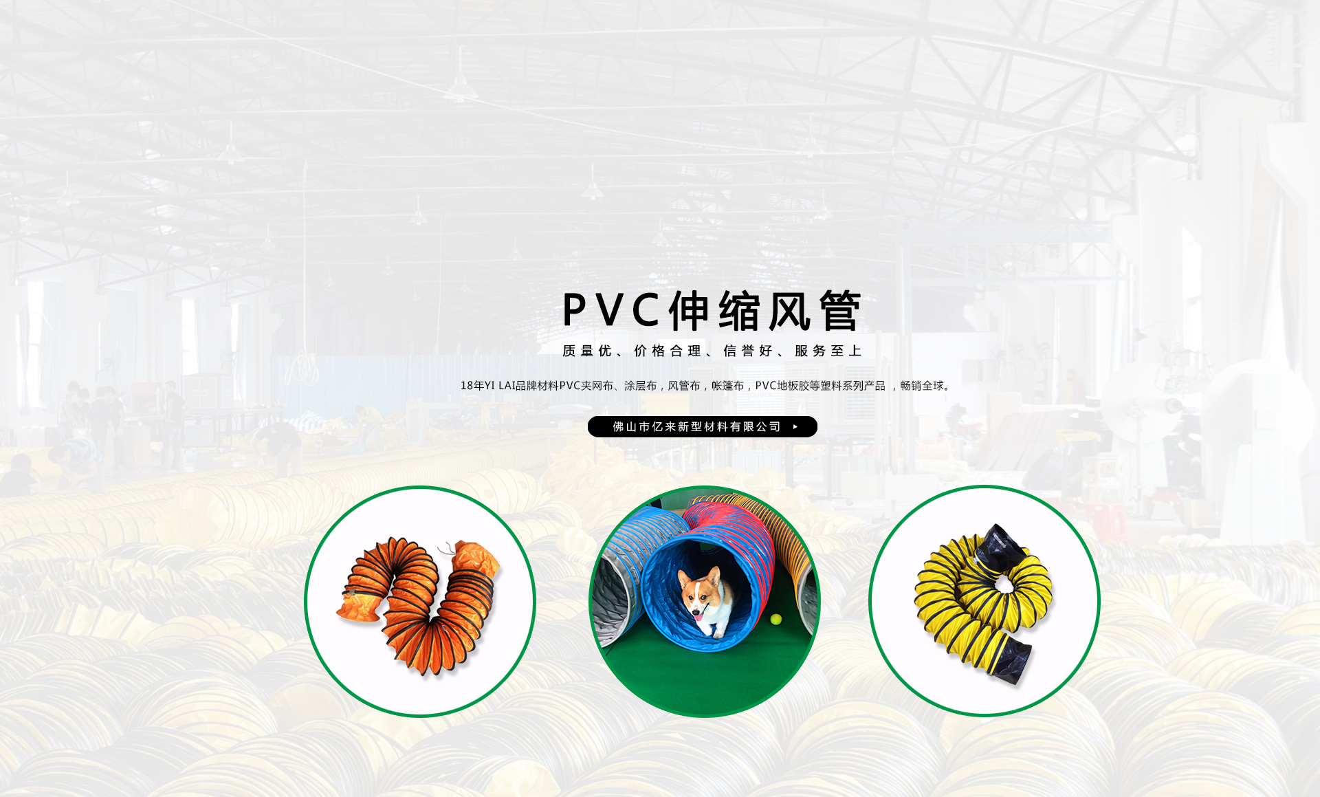創(chuàng)建“YILAI品牌”近20年來,產(chǎn)品質(zhì)量穩(wěn)定提高,生產(chǎn)及經(jīng)營的產(chǎn)品包括PVC夾網(wǎng)布、PVC彩條布、PVC風(fēng)管布、PVC涂層布、PVC籬笆圍護(hù)欄布、PVC透明夾網(wǎng)布、PVC伸縮風(fēng)管、車縫風(fēng)管、寵物管、耐高溫風(fēng)管、地下室通風(fēng)管,保溫通風(fēng)管、空調(diào)排風(fēng)管、正負(fù)壓通風(fēng)管、三通/四通排風(fēng)管、防靜電風(fēng)管、隧道風(fēng)管、PVC地板膠等系列產(chǎn)品在市場(chǎng)上得到廣大客戶認(rèn)可,暢銷歐美、東南亞、非洲、中東等國外市場(chǎng)。